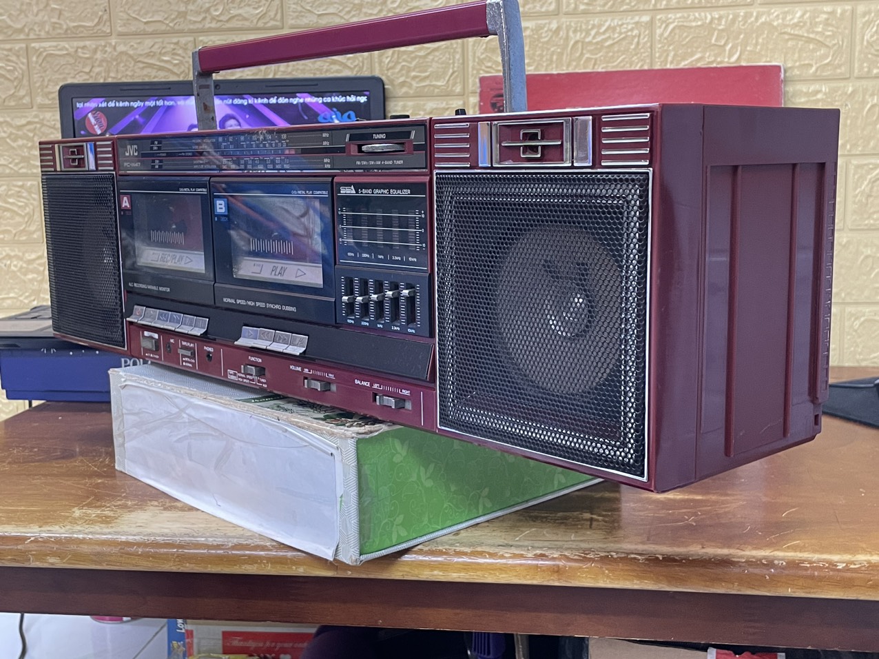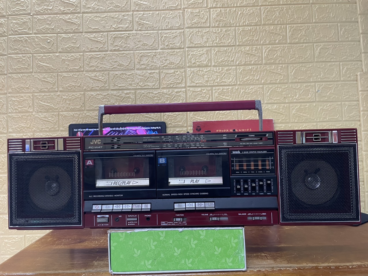 JVC PC 47 sử dụng điện 220v-4dòng điện ,5 cần equalizer ,co cần chỉnh balance ,Radio AM-FM 108 nguyên bản,4 band đài : AM,FM,SW1,SW2 .các chức năng hoàn chỉnh,liên hệ Thuỳ Audio Sài Gòn 0945019268.
